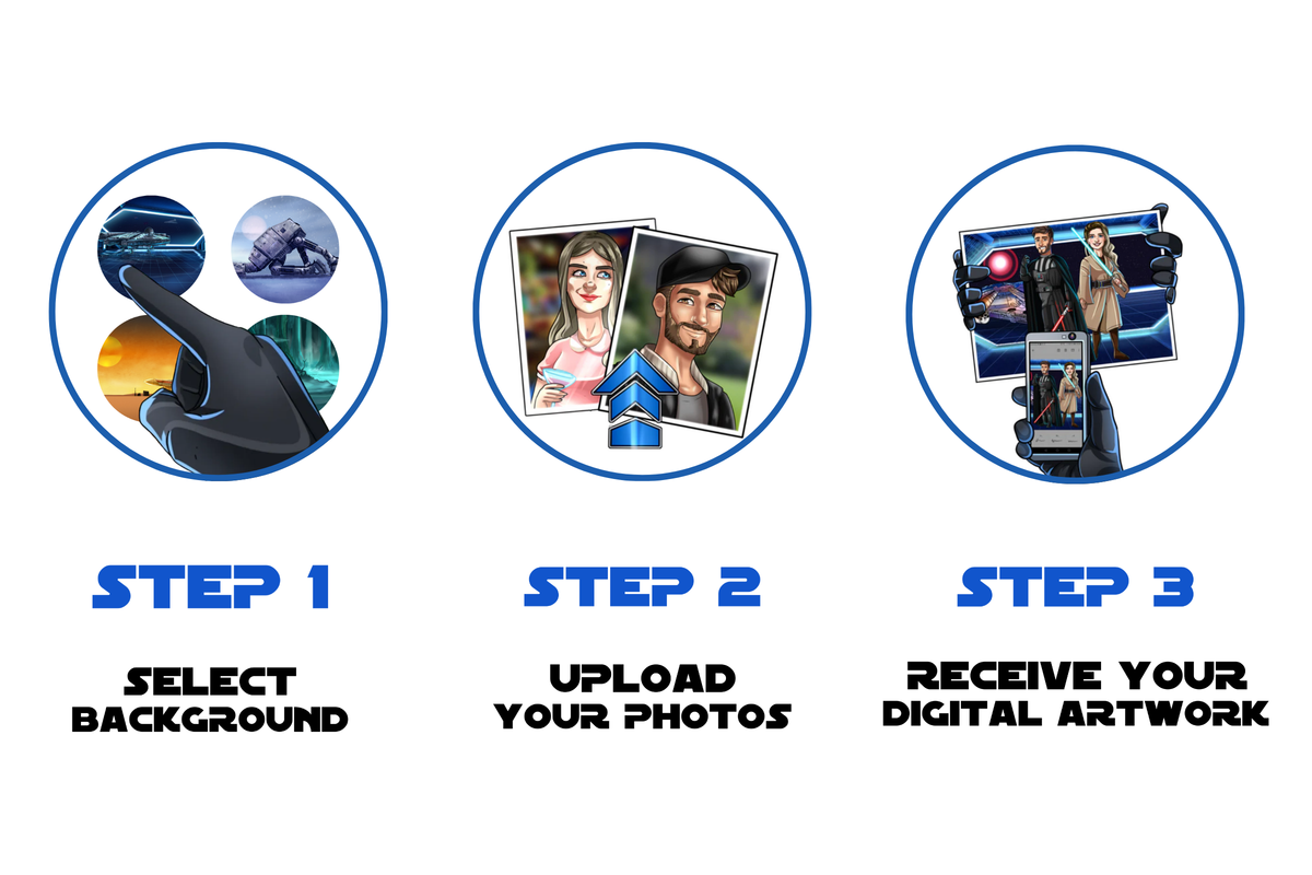 Select from one of our iconic backgrounds or create your own by uploading a photo or leaving a note describing what you have in mind!